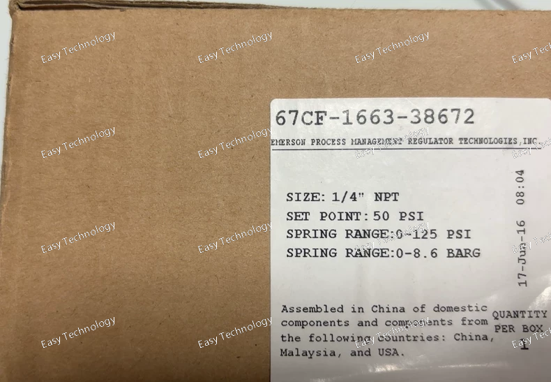 Technical Specifications Category Specification Fisher Part Number 67CF-1663-38672 Description Positioner and Supply Pressure Gauge Kit Applicable Actuator Fisher 667 and 667AF Series (Size 30 to 120) Pneumatic Actuators Positioner Type Pneumatic Force-Balance, Cylinder Type Input Signal 3 to 15 psig (0.2 to 1.0 bar) standard pneumatic signal. Supply Air Pressure Maximum 150 psig (10.3 bar). Typical operating supply is higher than the signal pressure, often in the 40-100 psig range, to provide sufficient power. Air Consumption Approximately 3.0 SCFM (85 standard liters per minute) at maximum output. Action Direct or Reverse. The action of the positioner (whether the actuator stem extends or retracts with an increasing signal) is field-reversible. Feedback Mechanism Direct mechanical feedback linkage from the actuator's piston rod. Housing Weather-resistant, gasketed aluminum enclosure. Gauge Included pressure gauge for monitoring supply air pressure. Mounting Directly mounts to the actuator as a complete assembly. Performance Linearity: Typically ±1% of span. Hysteresis: Typically less than 0.5% of span. Temperature Limits Standard instrument air quality is required. The positioner is suitable for standard industrial ambient temperatures.