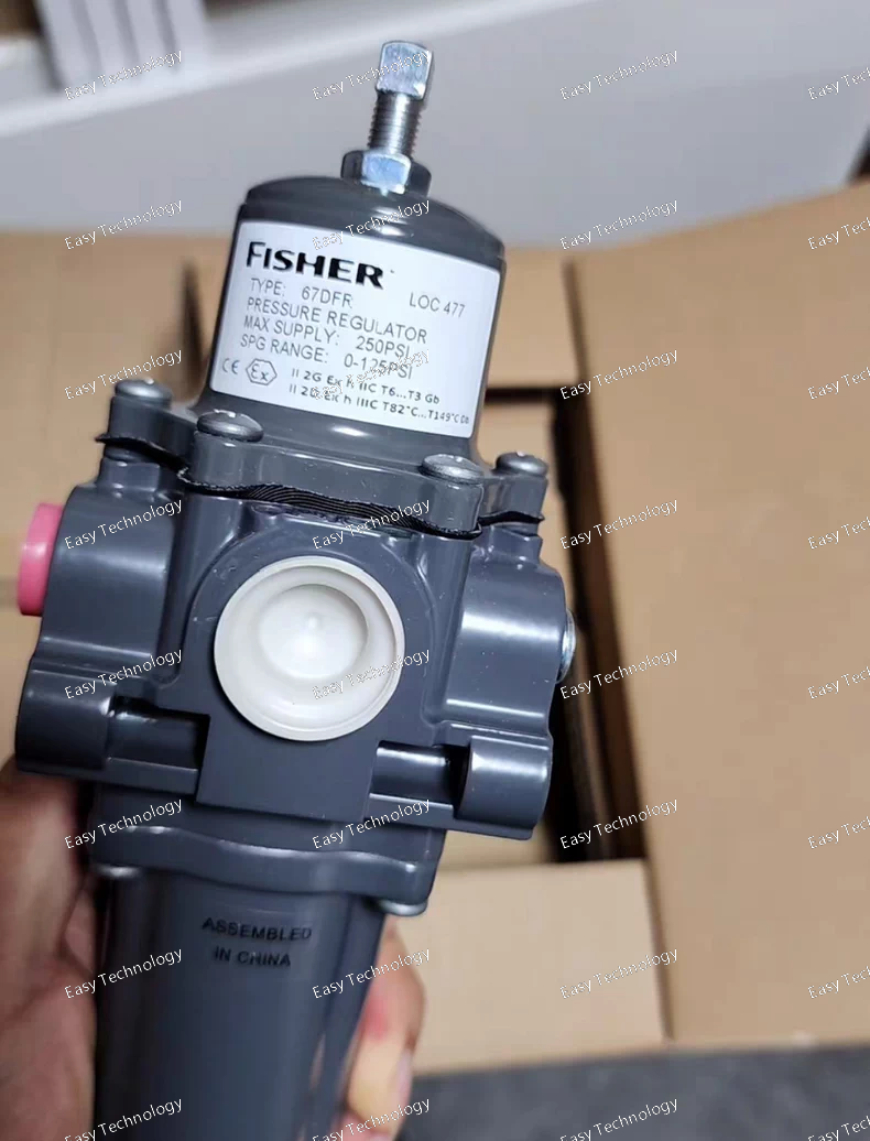 Parameters / Specifications Model: 67DFR‑2343‑3134970 Type: Filtered regulator with internal relief Series: Fisher 67D Series Pressure Reducing Regulators Body Material: Aluminum (standard for 67D/67DFR) Connection Size: ½″ NPT (inlet/outlet) typical for series Maximum Inlet Pressure (Body Rating): 250 psig (≈17.2 bar) for filtered models Outlet (Regulated) Pressure Ranges: Typical ranges in the series include 0‑20 psig (0‑1.4 bar), 0‑35 psig (0‑2.4 bar), 0‑60 psig (0‑4.1 bar), and 0‑125 psig (0‑8.6 bar) Maximum Emergency Outlet Pressure (relief set): ~50 psig (≈3.4 bar) above the outlet set pressure (for types with internal relief) Temperature Capability (depends on elastomer/diaphragm): Nitrile (NBR): approx –40 °F to +180 °F (≈ –40 °C to +82 °C) Fluoroelastomer (FKM): approx 0 °F to +300 °F (≈ –18 °C to +149 °C) Silicone (VMQ) with low‑temp bolting: approx –60 °F to +180 °F (≈ –51 °C to +82 °C) Media: Air or compatible gases (with appropriate material compatibility) Typical Applications: Instrument air supply regulators, pneumatic controllers, panel‑mounted regulators, any system requiring clean downstream air plus over‐pressure relief Approximate Weight: For the filtered + relief ½″ NPT aluminum version: ~2.0 lb (≈0.9 kg)