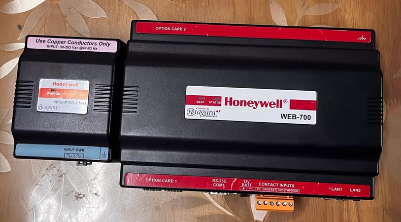 JACE800 Technical Specifications General Manufacturer: Honeywell Type: Field-programmable, modular smart controller Primary Use: Building Automation System (BAS) integration (HVAC, lighting, security, etc.) Hardware Processor: High-performance ARM-based CPU Memory: RAM: 512 MB (expandable) Flash Storage: 4 GB (for applications/logs) Ports: Ethernet: 2× 10/100 Mbps (RJ45) Serial Ports: 2× RS-485 (for BACnet MS/TP, Modbus, etc.) USB: 1× USB 2.0 (for configuration/maintenance) Expansion Slots: Supports optional modules (e.g., LonWorks, Zigbee) Software & Protocols OS: Linux-based Niagara Framework (Tridium AX or N4 compatible) Supported Protocols: BACnet IP & MS/TP Modbus RTU/TCP LonWorks (optional) OPC UA/DA SNMP (for network monitoring) MQTT (IoT/cloud connectivity) Performance Max Points Capacity: ~50,000 (varies with configuration) Concurrent Users: Supports multiple operator workstations Power & Environment Power Supply: 24V AC/DC or PoE (Power over Ethernet) Operating Temperature: -40°C to 70°C (-40°F to 158°F) Humidity: 10–90% non-condensing Certifications UL, CE, FCC, RoHS compliant BACnet BTL Listed Key Features Scalable: Handles small to large buildings. Cybersecurity: Role-based access, TLS/SSL encryption. Edge-to-Cloud: Supports remote monitoring via Niagara N4.