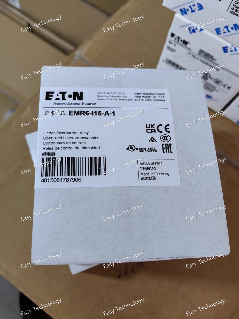 Parameter Specification Product Model EMR6-I15-A -1 Product Line Eaton EMR6 Electronic Overload Relay Rated Operational Voltage (Ue) Up to 690 V AC Motor Full-Load Current Range Depends on the installed Heater Element / Rating Plug. The I15 frame covers a specific range (e.g., 0.15 A to 25 A). The exact value is set by a removable rating plug. Tripping Class Selectable (e.g., Class 5, 10, 15, 20, 30) Protection Functions <ul><li>Phase Loss / Unbalance</li><li>Overload</li><li>Locked Rotor / Stall</li><li>Jam / High Current</li><li>Ground Fault (Earth Fault)</li></ul> Auxiliary Contacts Typically includes at least one 95-96 (NC) fault contact and one 97-98 (NO) alarm contact. Reset Mode Manual Reset (inferred from "-1" suffix), with options for automatic reset. Mounting Designed to be mounted directly onto a corresponding Eaton contactor (e.g., DIL series) without tools. Ambient Temperature -25°C to +60°C Standards Compliance IEC/EN 60947-4-1, UL 508, CSA C22.2 No. 14