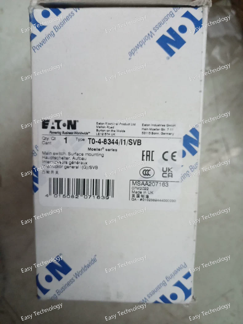 Parameter Specification / Inference Product Model T0-4-8344/I1/SVB Product Line Eaton T0 Power Contactor Rated Operational Current (Ie) Typically up to ~25 A at AC-3, 400V Rated Operational Voltage (Ue) Up to 690 V AC Number of Main Poles 4 Coil Voltage 110-120 V AC, 50/60 Hz Auxiliary Contacts 1 NO (Normally Open) Mounting Style Base Mounting with Screw Terminals (SVB) Electrical Life > 1 million operations (at rated load) Mechanical Life > 10 million operations Standards Compliance IEC 60947-4-1, UL 508