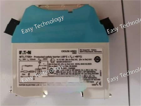 Parameter Specification Product Model MTL7706+ Product Line Eaton MTL Signal Conditioners & Isolators Function Dual-channel, 2-Wire Transmitter Isolator & Power Supply Input Signal Accepts and powers two independent 2-wire, 4-20 mA transmitters from a hazardous area. Output Signal Two independent, isolated 4-20 mA DC signals. Input/Output Isolation Galvanic Isolation between input, output, and power supply. Power Supply Typically 20-30 V DC Intrinsic Safety (IS) Approval Yes. Certified for use in Hazardous Areas (e.g., ATEX, IECEx). Entity Parameters (Example values, MUST be verified for design): - Vmax (Ui): e.g., 28 V - Imax (Ii): e.g., 93 mA - Pi: e.g., 0.65 W - Ci: e.g., 0 μF - Li: e.g., 0 mH Non-Incendive (NI) Approval Yes (for applicable standards like FM/CSA). Line Fault Detection Yes, can detect open and short circuits in the field wiring. Accuracy Typically better than ±0.1% of span. Mounting DIN-Rail Mount (Standard 35 mm) Operating Temperature -20°C to +60°C