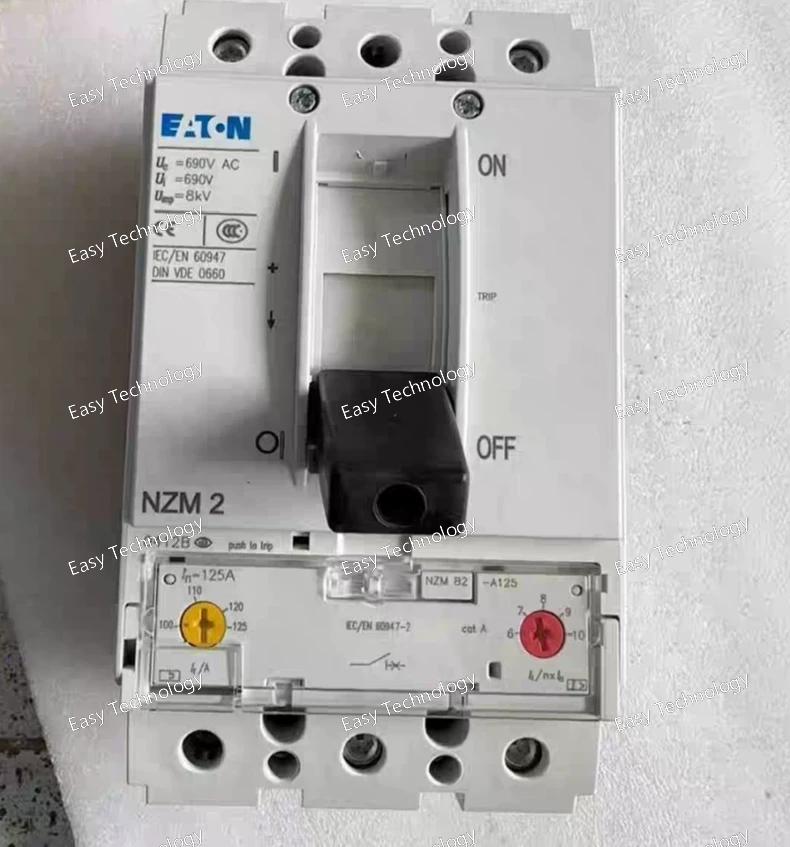 Parameter Specification Manufacturer / Series Eaton, NZM Series Model Number NZMB2-A125-NA Product Type Miniature Circuit Breaker (MCB) Pole Configuration 2-Pole Rated Current (In) 125 A Trip Curve Characteristic B Characteristic (General Purpose) Rated Operational Voltage (Ue) 230/400V AC Rated Insulation Voltage (Ui) 500V AC Rated Frequency 50/60 Hz Breaking Capacity (Icu) 10 kA at 230/400V AC (IEC 60898) / 25 kA at 400V AC (IEC 60947-2) * Standards Compliance IEC 60898-1, IEC 60947-2 Mounting Fixed Mounting (on DIN Rail TH35-7.5) Electrical Life 6,000 cycles Mechanical Life 20,000 cycles Ambient Temperature -25°C to +70°C (Derating above 40°C) Torque Specification Typically 2.0 - 2.5 N·m
