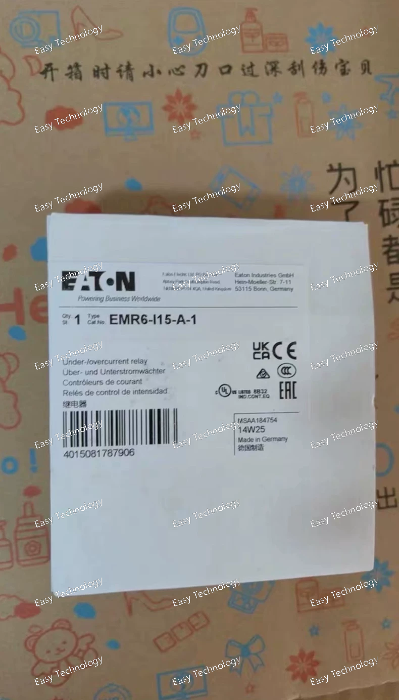 Parameter Specification Product Model EMR6-I15-A-1 Product Line Eaton EMR6 Electronic Overload Relay Rated Operational Voltage Up to 690 V AC Motor Current Range I15 Frame (e.g., 0.15–25 A, set via rating plug) Protection Functions - Overload (L) - Short-Circuit (S) - Phase Loss/Unbalance - Ground Fault (G) Tripping Class Selectable (e.g., Class 5–30) Auxiliary Contacts 1 NC (95–96) + 1 NO (97–98) Reset Mode Manual Reset (inferred from "-1") Mounting Tool-free attachment to Eaton contactors (e.g., DIL series) Standards Compliance IEC/EN 60947-4-1, UL 508