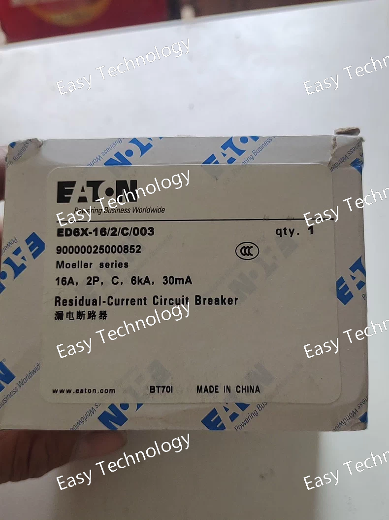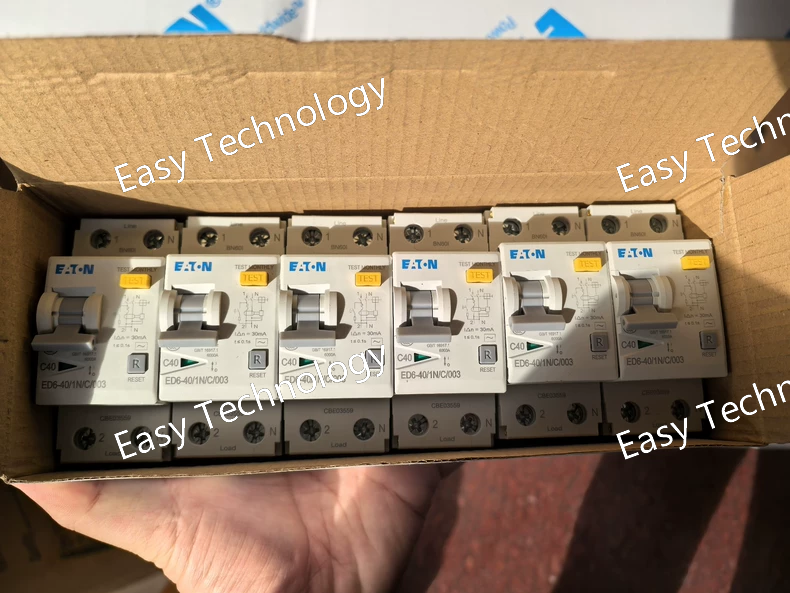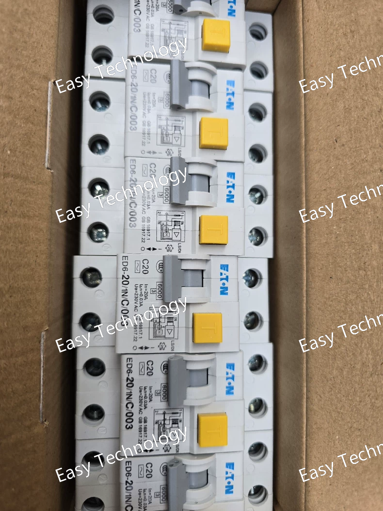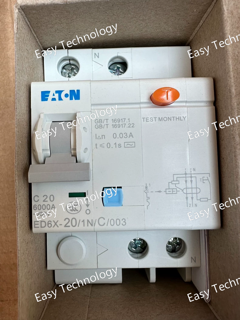 Parameter Specification Product Series Eaton ED6X (Accessory for D6 MCB) Model Number ED6X-20/1N/C/003 Description Residual Current Release Module, for 1P+N MCB, 20A, Curve C, 30mA AC Compatible With Eaton D6 series, 2-pole (1P+N), C-curve Miniature Circuit Breakers Max. Rated Current of Assembly Up to 20A (When combined with a compatible D6 MCB) Rated Residual Operating Current (IΔn) 30 mA Residual Current Type Type AC (for alternating sinusoidal residual currents only) Rated Voltage 230V AC Mounting Snaps onto the side of a compatible D6 MCB on a DIN Rail. Standards & Certifications IEC 61009-1, CE