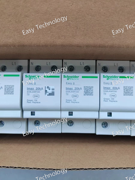 The Schneider Electric EA9L is a Type 1+2 Combined Surge Protective Device (SPD) with a 2-Pole (L+N) configuration and a maximum discharge current (Imax) of 20 kA per mode. Part of the user-friendly Easy9 range for residential and light commercial applications, it offers primary and secondary surge protection in a single, compact device.