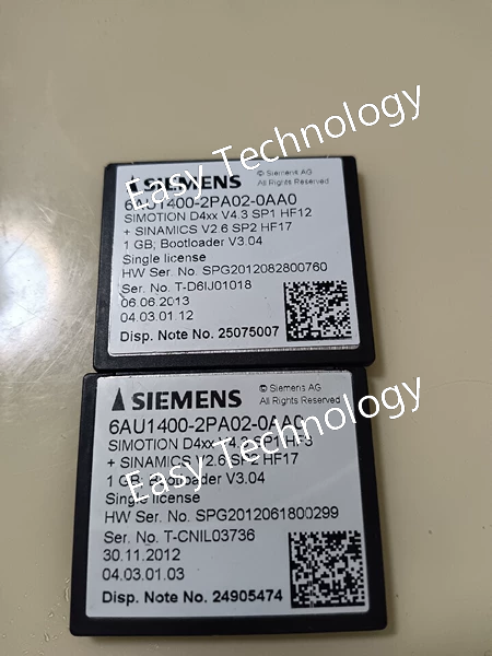 Brand: SIEMENS Model: 6AU1400-2PA02-0 AA0 Storage capacity: 8 MB Interface type: CF card Operating temperature range: -40 ° C to + 85 ° C Protection class: IP20 Compatibility: For SINAMIC SS120 servo drive This SIEMENS 6AU1400-2PA02-0 AA0 memory card Is a high-performance storage solution designed for industrial automation environments. The CFast interface provides 1GB of storage space to meet the needs of data storage in industrial applications.Its wide operating temperature range (-40 ° C to + 85 ° C) enables stable operation in extreme environments, ensuring data safety and reliability. In addition, the memory card is CE and RoHS certified and meets international safety standards. When using, make sure that you are properly connected to the appropriate industrial automation equipment and follow the guided steps in the operating manual to get the most out of it.