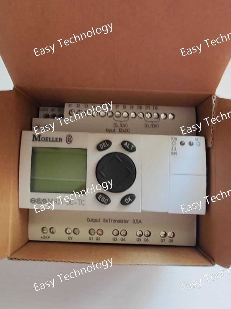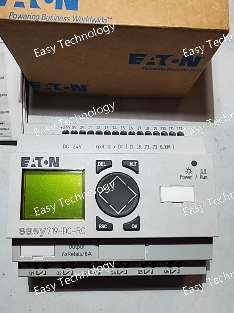 Technical Parameters Parameter Category Specification Product Model EASY719-DC-RC Product Line EASY700 Device Type Programmable Logic Relay (PLR) / Smart Relay Supply Voltage 24 V DC (19.2 - 28.8 V DC) Power Consumption Typically 15 W (including loads) Core Processor 32-bit microcontroller User Program Memory 2,000 function blocks (non-volatile) Data Memory 512 flags (non-volatile) Real-Time Clock (RTC) Integrated (buffered) Digital Inputs 12 x Digital Inputs • 24 V DC (sinking/sourcing) • 4 of them can be used as analog inputs (0-10 V, 0/4-20 mA) or high-speed counters (5 kHz) Digital Outputs 8 x Relay Outputs • Switching Capacity: 250 V AC / 30 V DC Max. • 8 A (at 250 V AC Resistive) • 5 A (at 250 V AC Inductive, cos φ=0.4) Analog Inputs 4 x Analog Inputs (shared with 4 digital inputs) • Configurable: 0 - 10 V, 0/4 - 20 mA • Resolution: 10 bit High-Speed Counters 4 x High-Speed Counters (shared with 4 digital inputs) • Frequency: up to 5 kHz Display & Operation Integrated Color Graphic Display (RC) • High-resolution TFT color screen • 8 function keys with customizable labels Programming Interface Integrated EASY-PC interface (via RJ12 connector) & USB port Communication • EASY-LINK: For networking up to 12 EASY devices. • Ethernet (optional module): For integration into plant networks and remote access. • PC Connection: Via USB or RJ12. Programming Software Eaton EASY-SOFT (Version 7 or higher recommended for full functionality) Protection Rating Front panel: IP65 (when mounted) Housing: IP20 Mounting DIN rail mounting (35 mm) Ambient Temperature -25 °C to +55 °C (Operation) -40 °C to +70 °C (Storage) Dimensions (H x W x D) Approx. 126 x 90 x 64 mm