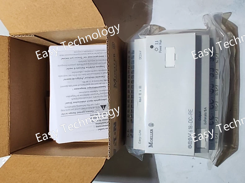 Technical Parameters Power Supply Voltage: 24 V DC Digital Inputs: 12 inputs at 24 V DC Relay Outputs: 6 relay outputs Relay Output Rating: 8 A thermal per relay Rated Operational Voltage (Relay Contacts): Up to 250 V AC Heat Dissipation: Approximately 4 W Protection & Isolation Short-Circuit Protection: Requires external protection (e.g., B16 circuit breaker or 8 A slow-blow fuse) Isolation: Safe isolation between input circuits and relay contacts, compliant with industrial standards Wiring & Connections Wiring Capacity: Solid wire: 0.2–4.0 mm² (AWG 22–12) Flexible wire: 0.2–2.5 mm² Connection Method: Screw terminals Communication: easyLINK expansion interface Mechanical Specifications Mounting Type: 35 mm DIN rail Dimensions: Width: approx. 3.5 in Height: approx. 3 in Depth: approx. 4.5 in Weight: approx. 0.39 kg (0.86 lb) Environmental Specifications Operating Temperature: –25 °C to +55 °C Standards & Certifications: CE, UL, CSA, EN industrial control standards
