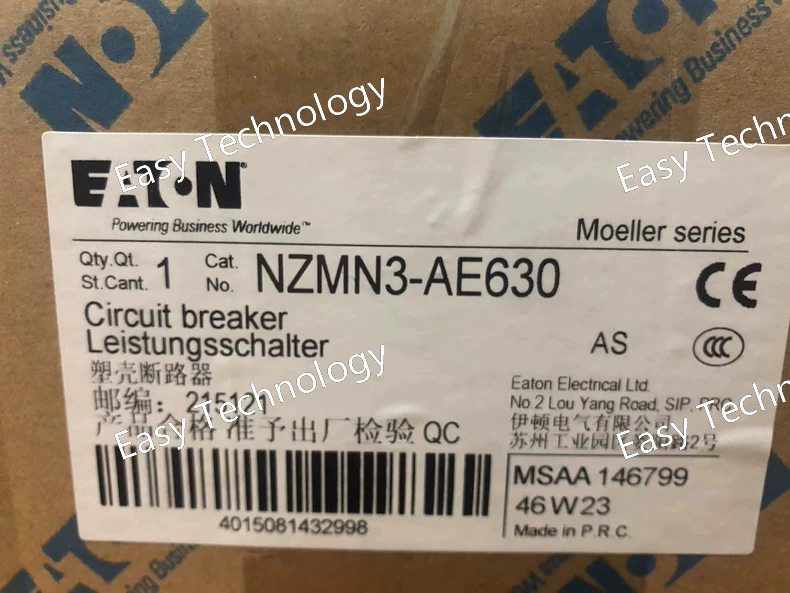 Technical Parameters Parameter Category Specification / Value Brand Eaton Product Model NZMN3-A630 Standard IEC 60947-2 Type Miniature Circuit Breaker (MCB) Number of Poles 3 Poles (3P) Rated Current (Iₙ) 63 A Tripping Characteristic / Curve Type C (Instantaneous trip: 5 to 10 x Iₙ) Rated Operational Voltage (Uₑ) 400 V AC, 50/60 Hz Rated Insulation Voltage (Uᵢ) 500 V AC Rated Impulse Withstand Voltage (Uᵢₘₚ) 6 kV Breaking Capacity (I꜀ᵤ) 10 kA (at 400V AC) Electrical Endurance 10,000 cycles Mechanical Endurance 20,000 cycles Terminal Capacity Solid: 50 mm² Stranded: 35 mm² Fine-stranded: 25 mm² Terminal Torque 3.0 N·m (Maximum) Mounting 35 mm DIN Rail (EN 60715) Degree of Protection IP20 (when installed in an enclosure) Ambient Temperature -25 °C to +60 °C (for reference) Approvals / Certifications CE, CCC, IEC 60947-2