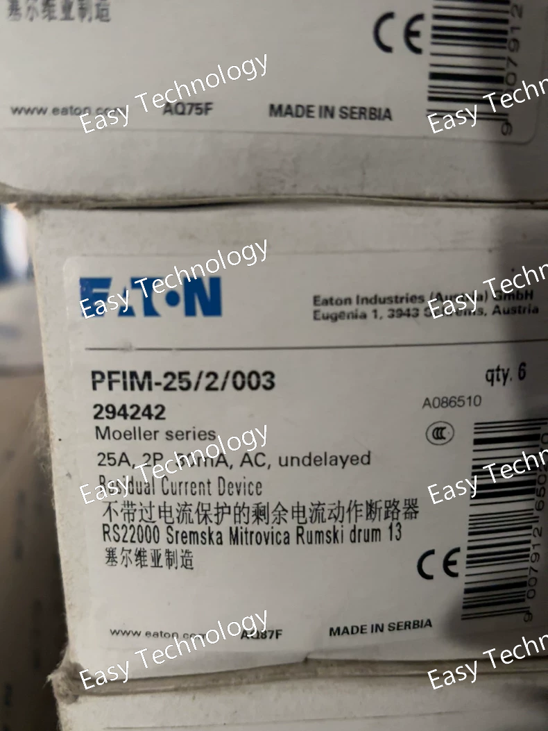 Technical Parameters Parameter Category Specification / Value Brand Eaton Product Series PFIM Product Model PFIM-25/2/003 Product Type Type 1 + Type 2 Combined SPD Rated Voltage (Uc) 230/400 V AC Nominal System Voltage 230 V AC (Single-Phase + N) Protection Mode 1-Pole + Neutral (1P+N) (L-PE, N-PE) Lightning Impulse Current (Iimp - 10/350 µs) 12.5 kA per pole Max. Discharge Current (Imax - 8/20 µs) 25 kA per pole Voltage Protection Level (Up) ≤ 2.0 kV Response Time < 100 ns Backup Overcurrent Protection Required (specific rating per local regulations and installation manual) Status Indication Visual Indicator (Green: OK; Red: End-of-Life) Remote Signalling Contact 1 Changeover Contact (SPDT) Special Feature Thermal Disconnector Mounting Mounting Plate (for panel mounting) Connection Screw Terminal Approvals / Certifications CE, IEC 61643-11