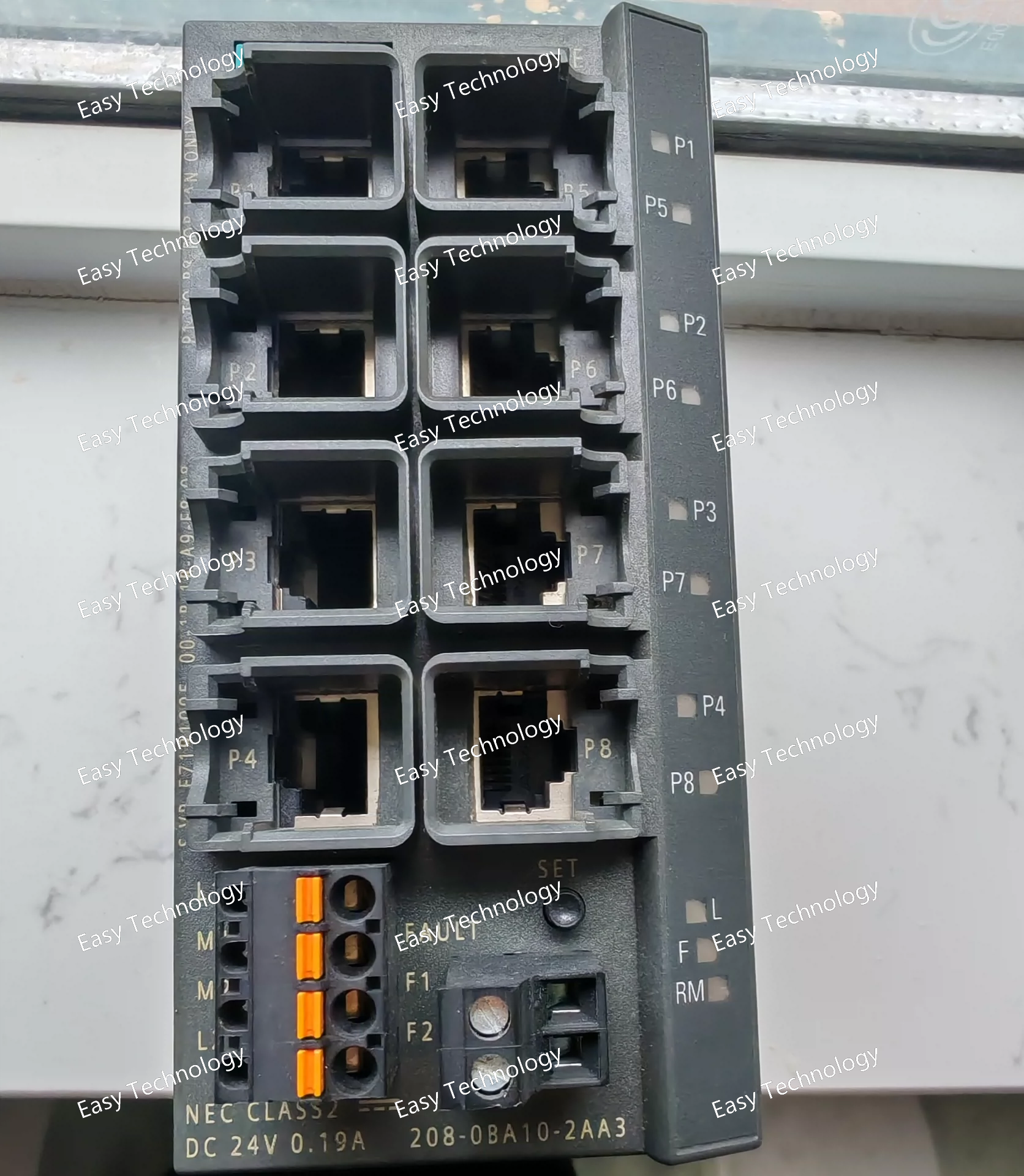 SCALANCEX208 is an industrial Ethernet switch manufactured by SIEMENS, with 8 10/100M bps M12 ports for automation equipment networking. It supports redundant power supplies and fault signal contactors, integrates network management functions, and is suitable for stable operation in harsh environments.